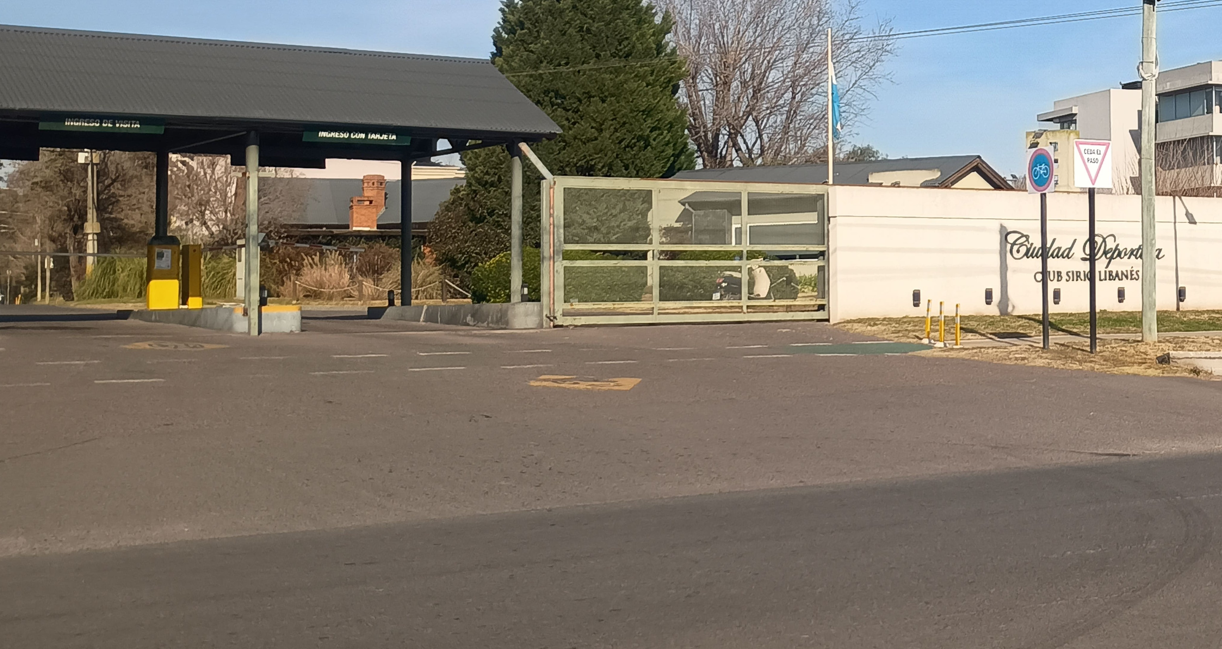 Acceso a la Ciudad Deportiva del Club Sirio Libanés: el primer barrio privado de Pergamino.