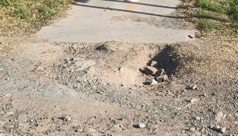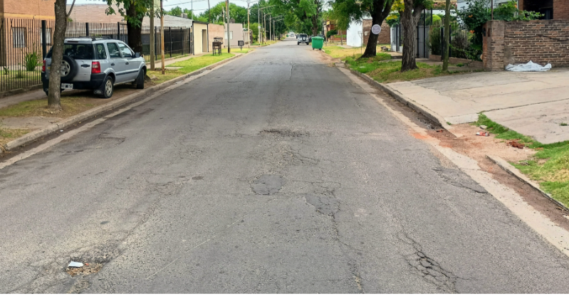 En este caso la calle no presenta mayores problemas pero sí sus veredas, que muestran acumulación de barro, suciedad y pastos crecidos. Los vecinos argumentan que la situación genera incomodidad por un lado e inseguridad por el otro. Además señalan que por esa arteria pasan a toda velocidad motos, autos y vehículos de gran porte, y solicitan medidas para mejorar la situación.