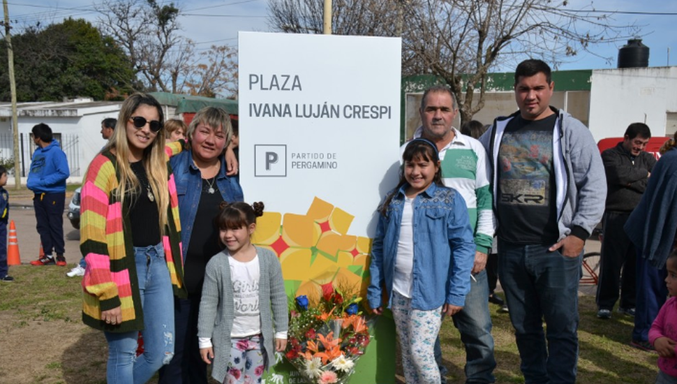 Por otra parte, en octubre de 2018 se inauguró la Plaza Ivana Luján Crespi, en la esquina de Deán Funes y Florida, frente al CDC y muy cerca de la que fue su casa. El espacio se convirtió en un lugar de encuentro para los chicos del barrio y cada fin de año Sandra, mamá de Ivana, coloca allí un árbol de Navidad.