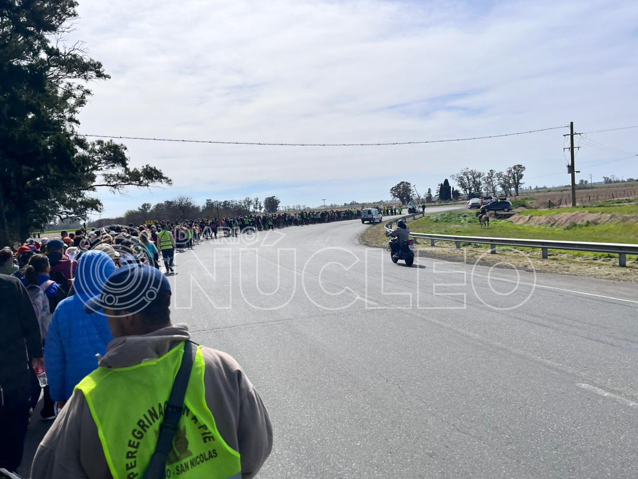 Más de 300 personas avanzan en la tarde de este sábado con dirección hacia el Santuario de la Virgen del Rosario de San Nicolás, distante 80 kilómetros de Pergamino, en la histórica peregrinación anual, en la que los fieles cumplen el ritual de caminar hacia ese lugar sagrado para hacer peticiones o manifestar agradecimiento.