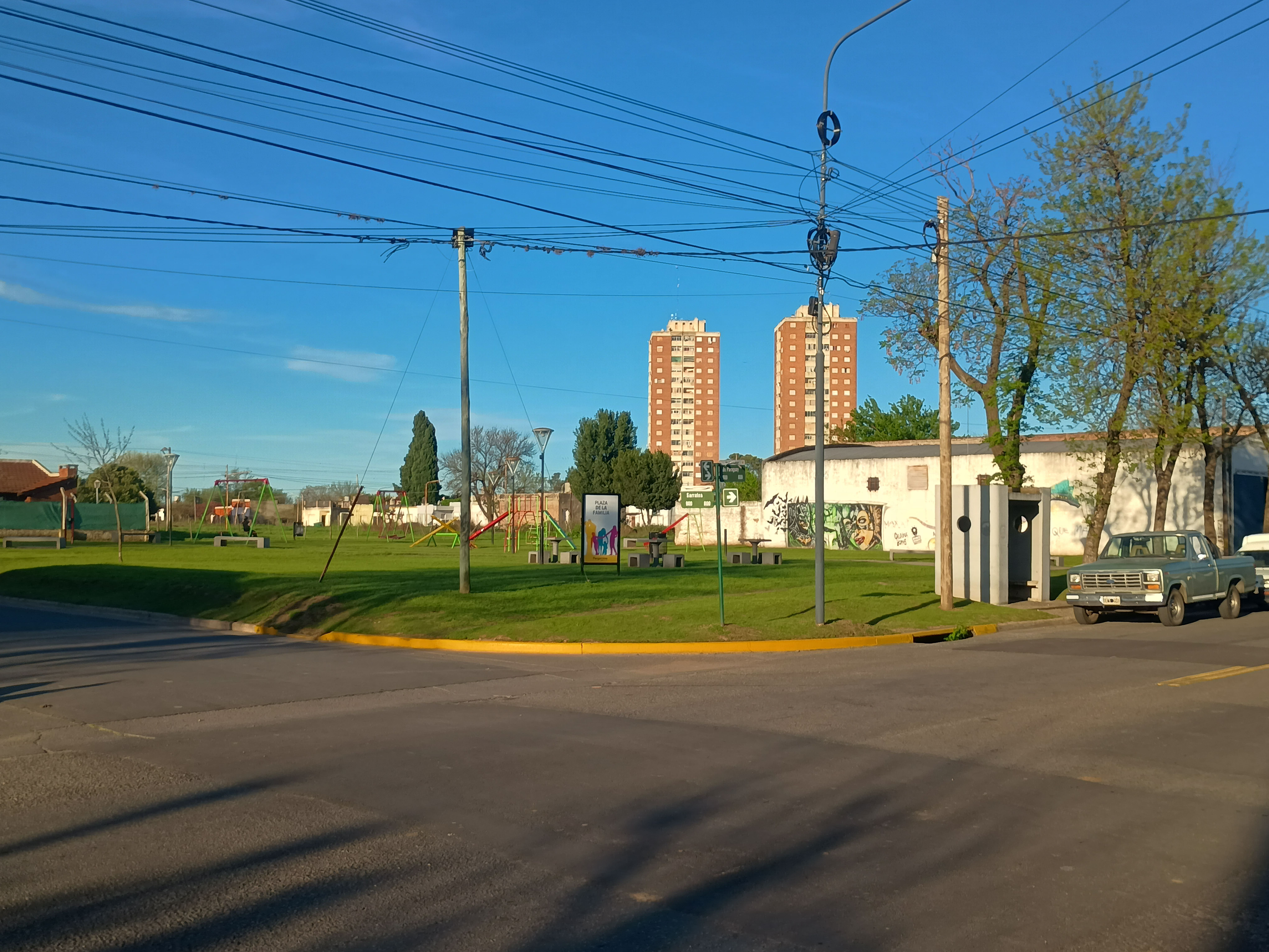 "Plaza de la Familia", en la esquina de Paraguay y Sarratea. Al fondo, las omnipresentes torres del barrio UOM.