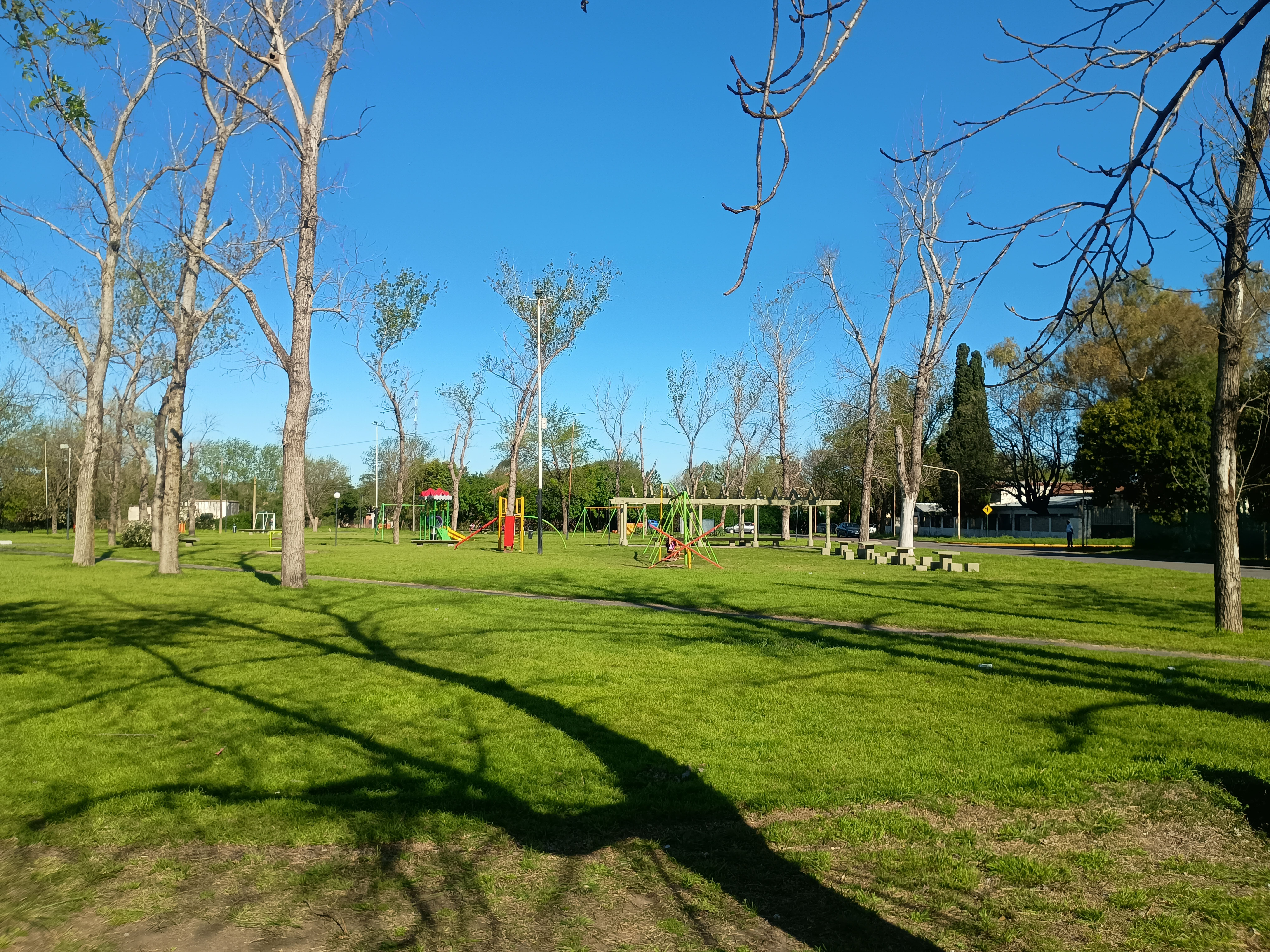 La amplia y arbolada Plaza Germán Abdala, que funciona como centro geográfico del barrio.