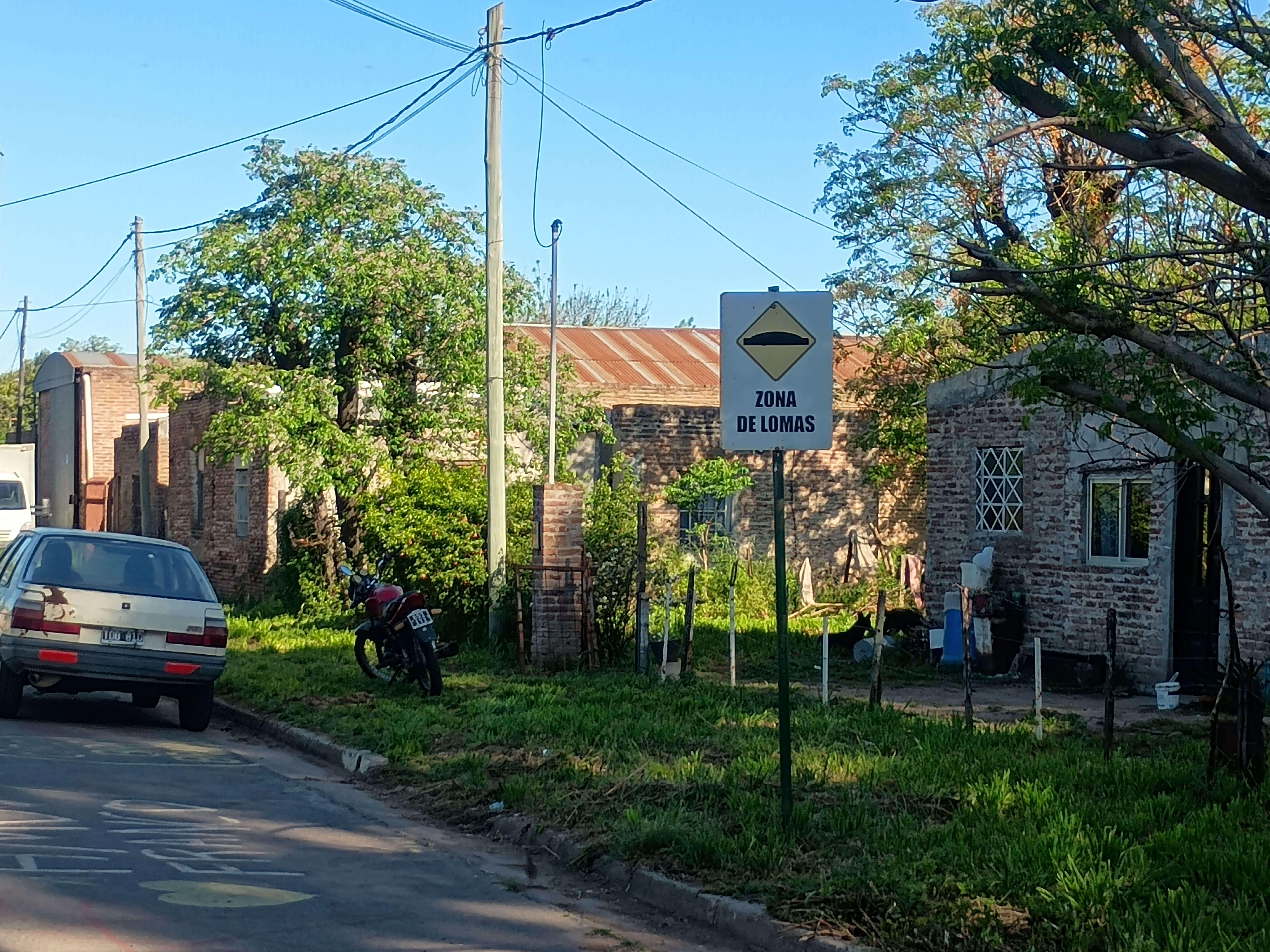 El cartel anuncia la presencia de "Lomas" (lomos de burro) destinados a reducir la velocidad de los vehículos que transitan por la zona.