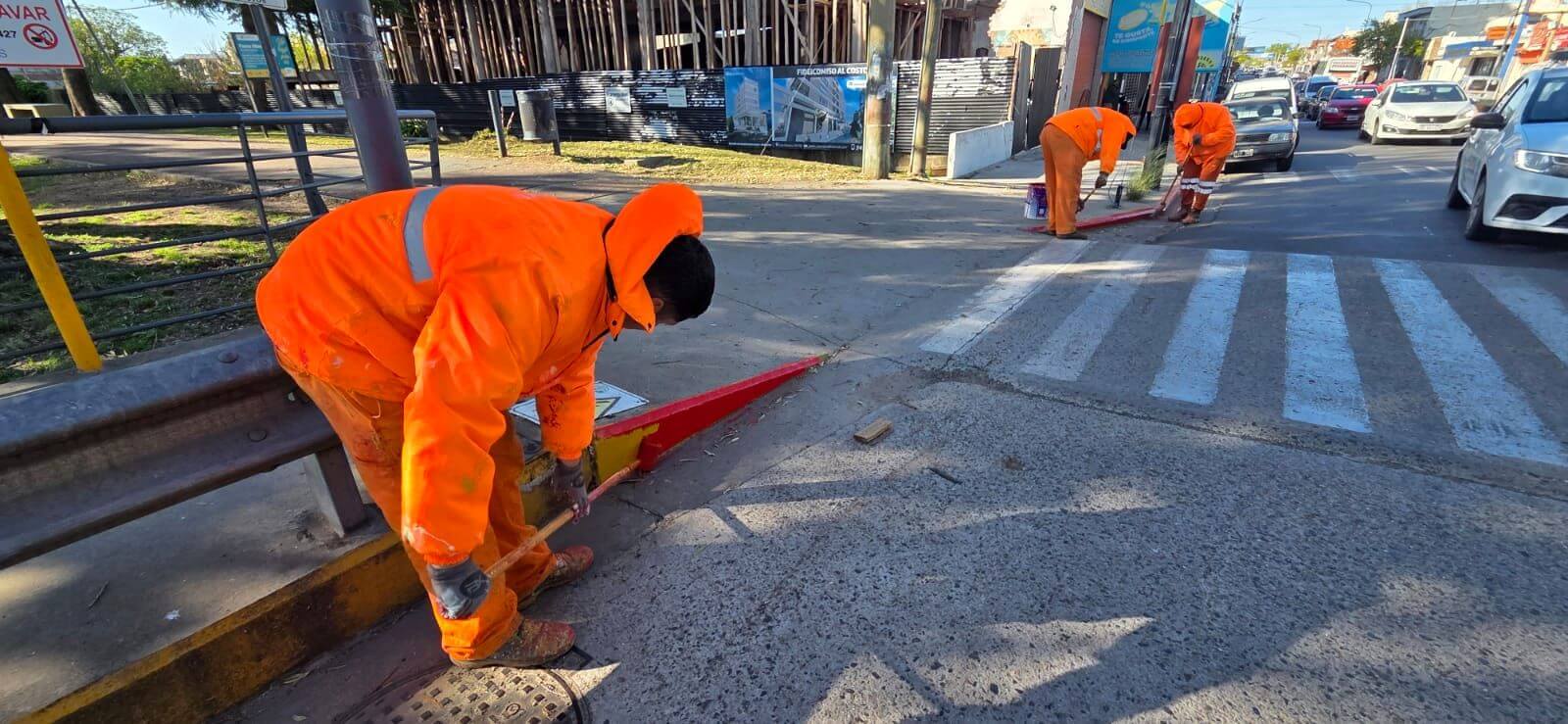 Además, se ejecutaron trabajos de demarcación horizontal en sectores destinados a colectivos urbanos e interurbanos, zonas de ascenso y descenso de pasajeros, reductores de velocidad, estacionamientos de motos, canteros y rotondas.