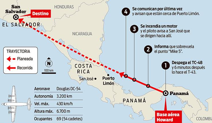El final llegó en el tramo Panamá-El Salvador, un día de lluvia. El comandante Mario Zurro, experimentado piloto y reconocido por su capacidad, que el motor 3 (ubicado a la derecha, próximo al fuselaje) se incendiaba y el 4 (también a la derecha, en el sector externo) se había parado. Después, el silencio.