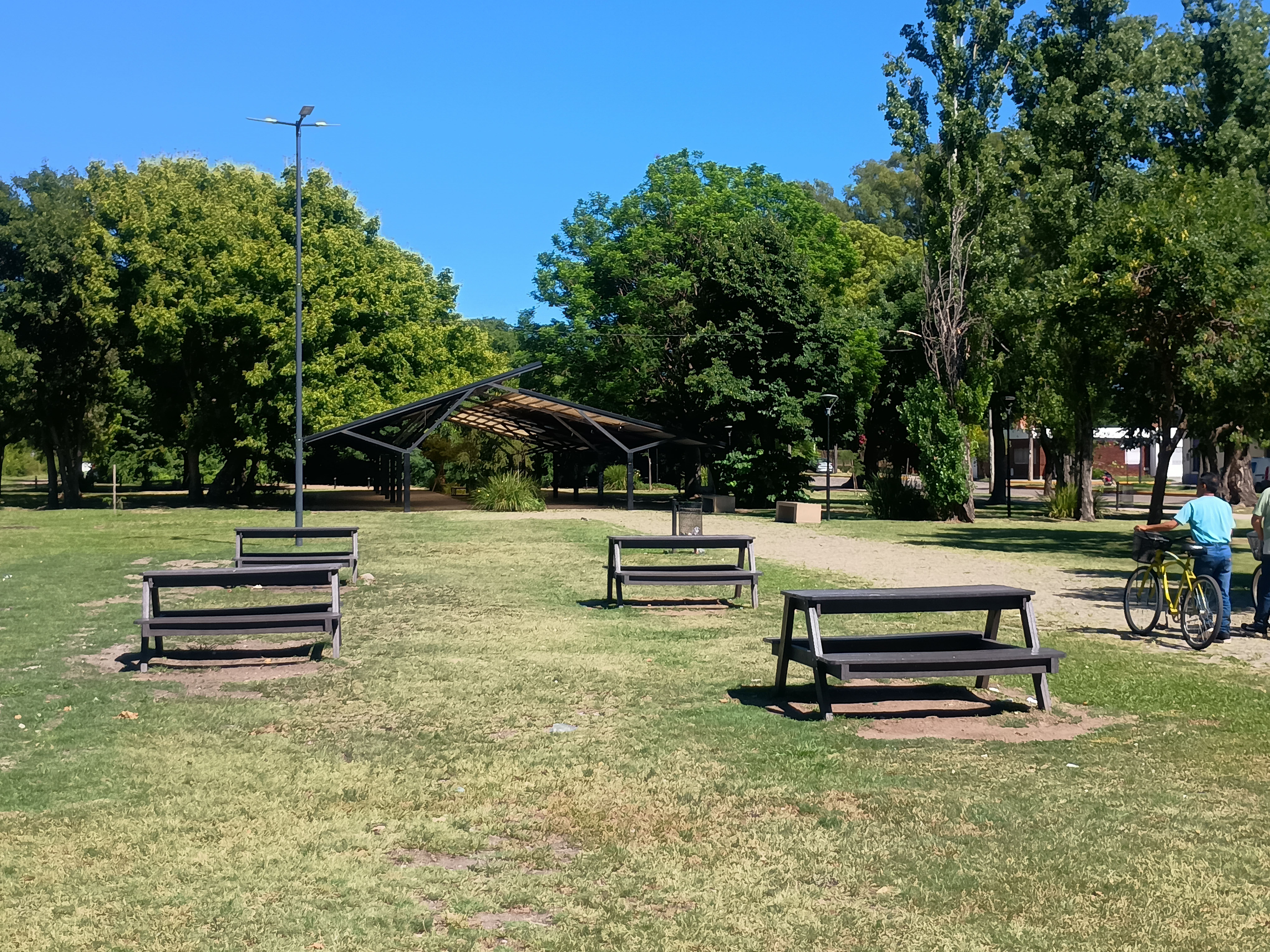 Area de descanso y tinglado al fondo.