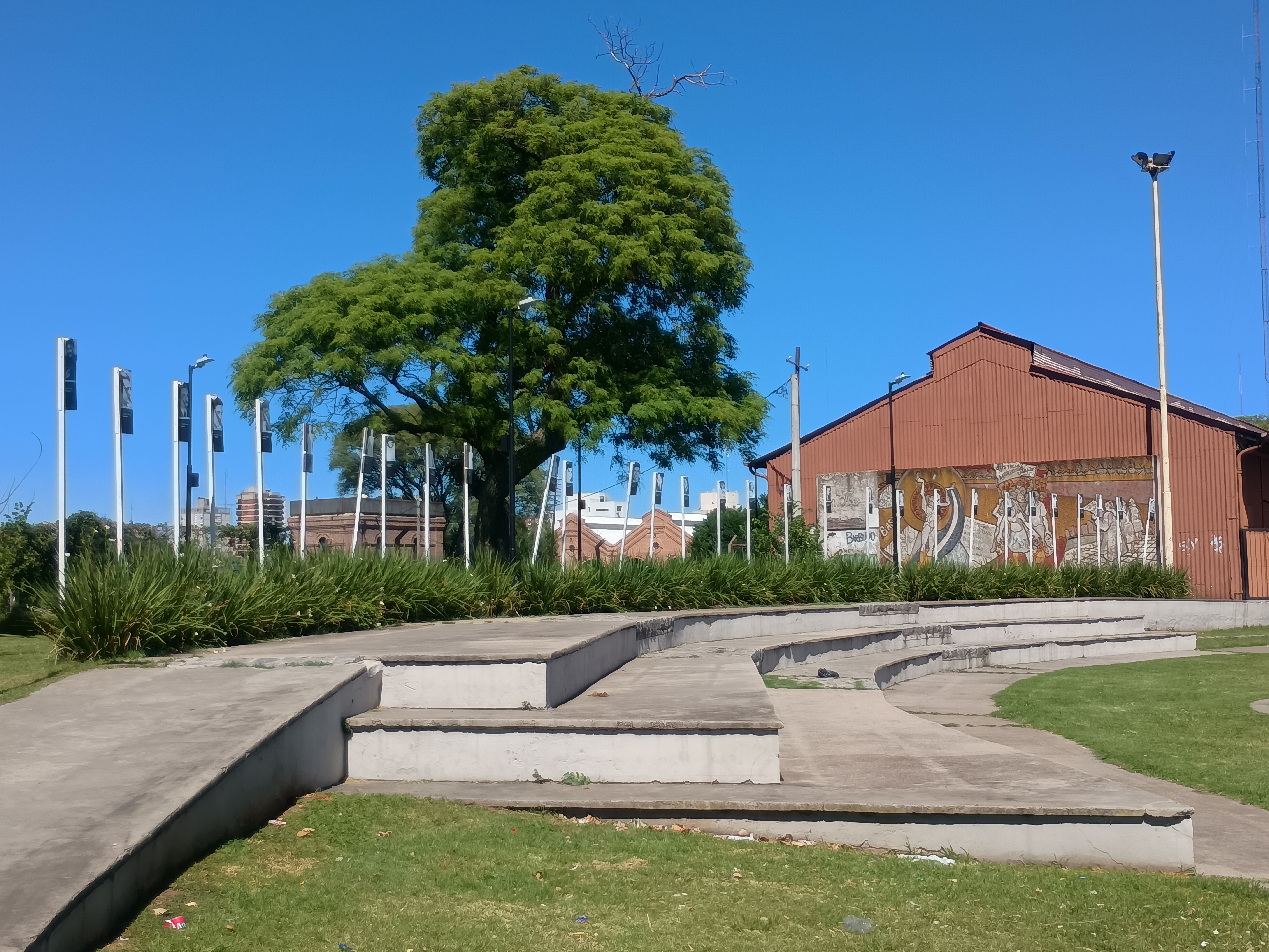 Anfiteatro de la Memoria, con las imágenes de 30 pergaminenses detenidos desaparecidos.