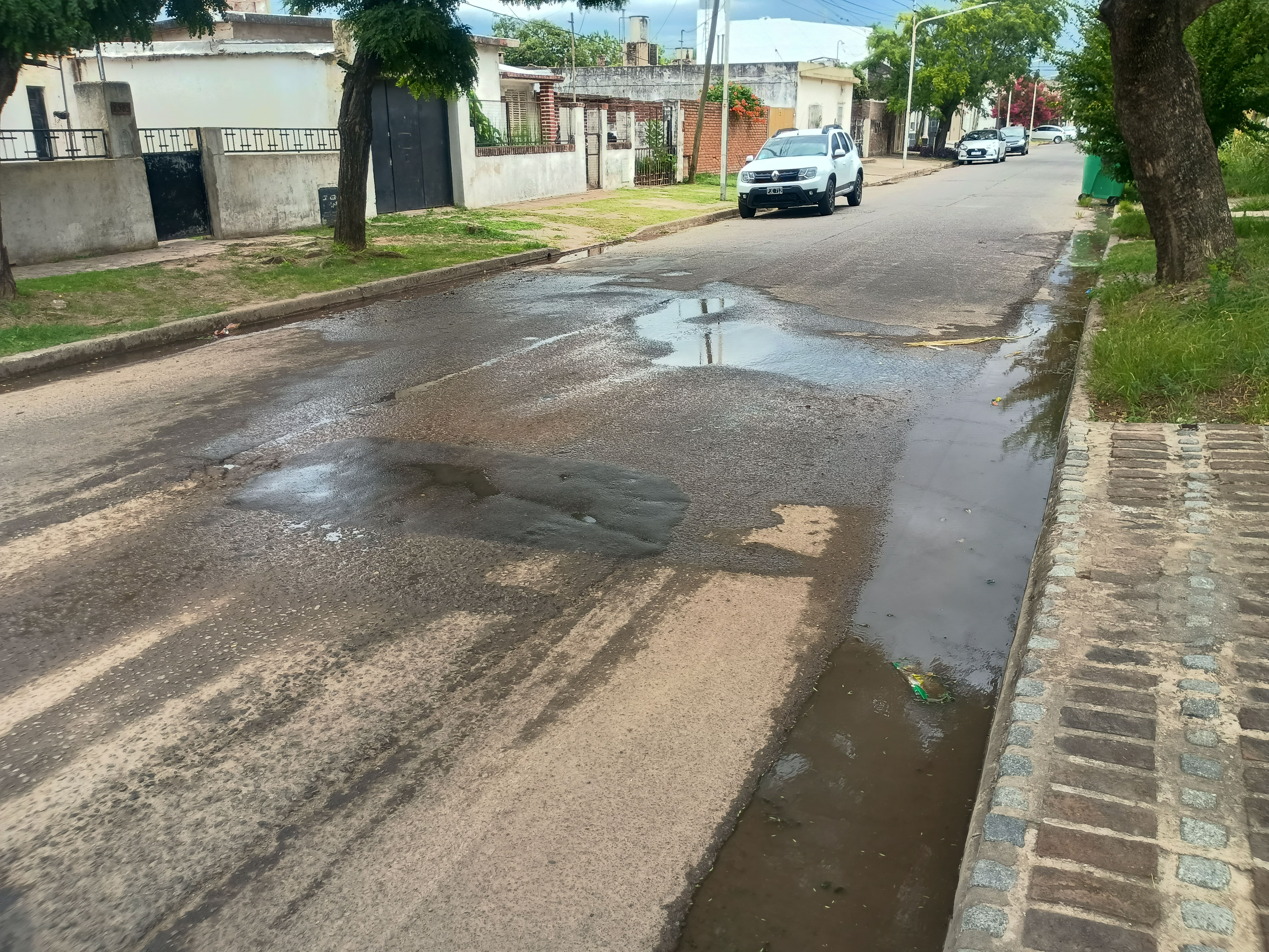 Hace poco más de una década, la extensión de la red cloacal obligó a romper el pavimento en calles como Francia, Perú, Vicente López y Alberdi; tras el bacheo, el suelo cedió y hoy presentan pozos que dificultan la transitabilidad.
