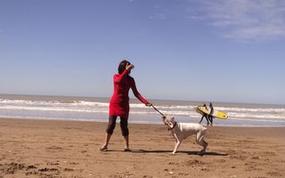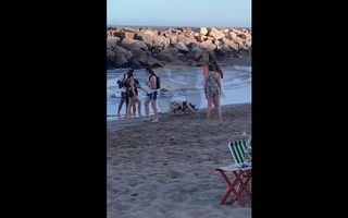 Sacó a pasear con correa a su chancho por la playa en Mar del Plata