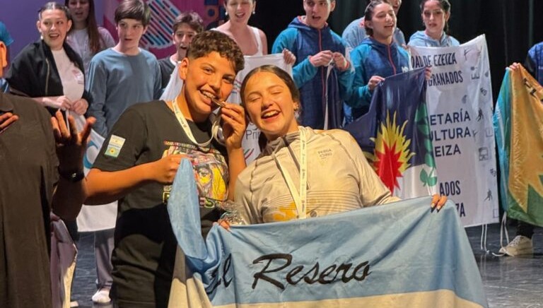 La segunda medalla para la delegación pergaminense vino por medio de la categoría Folclore Sub 15 para Alfonsina Ívalo y Mateo Illia, quienes se pusieron en el pecho la presea de Bronce.