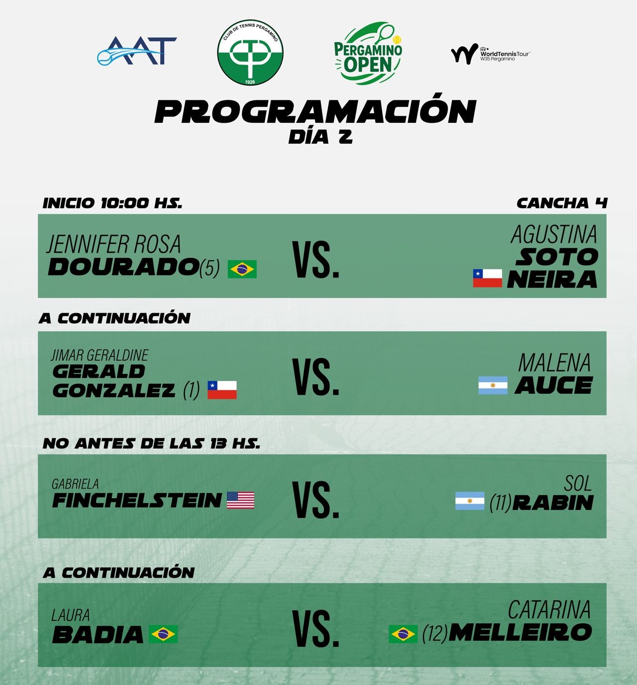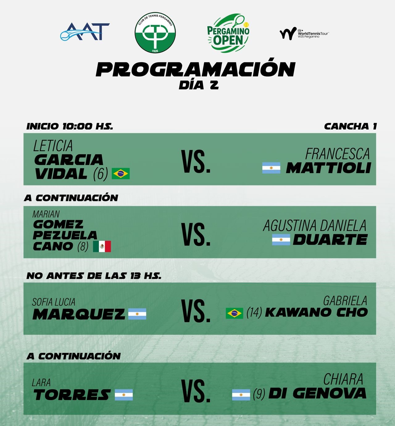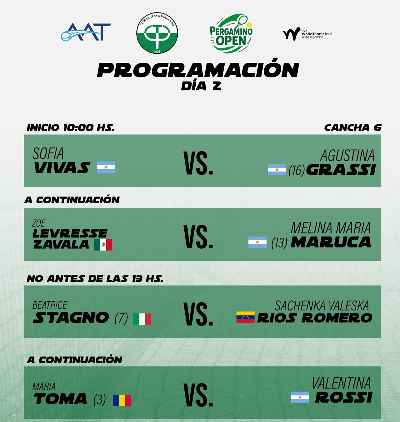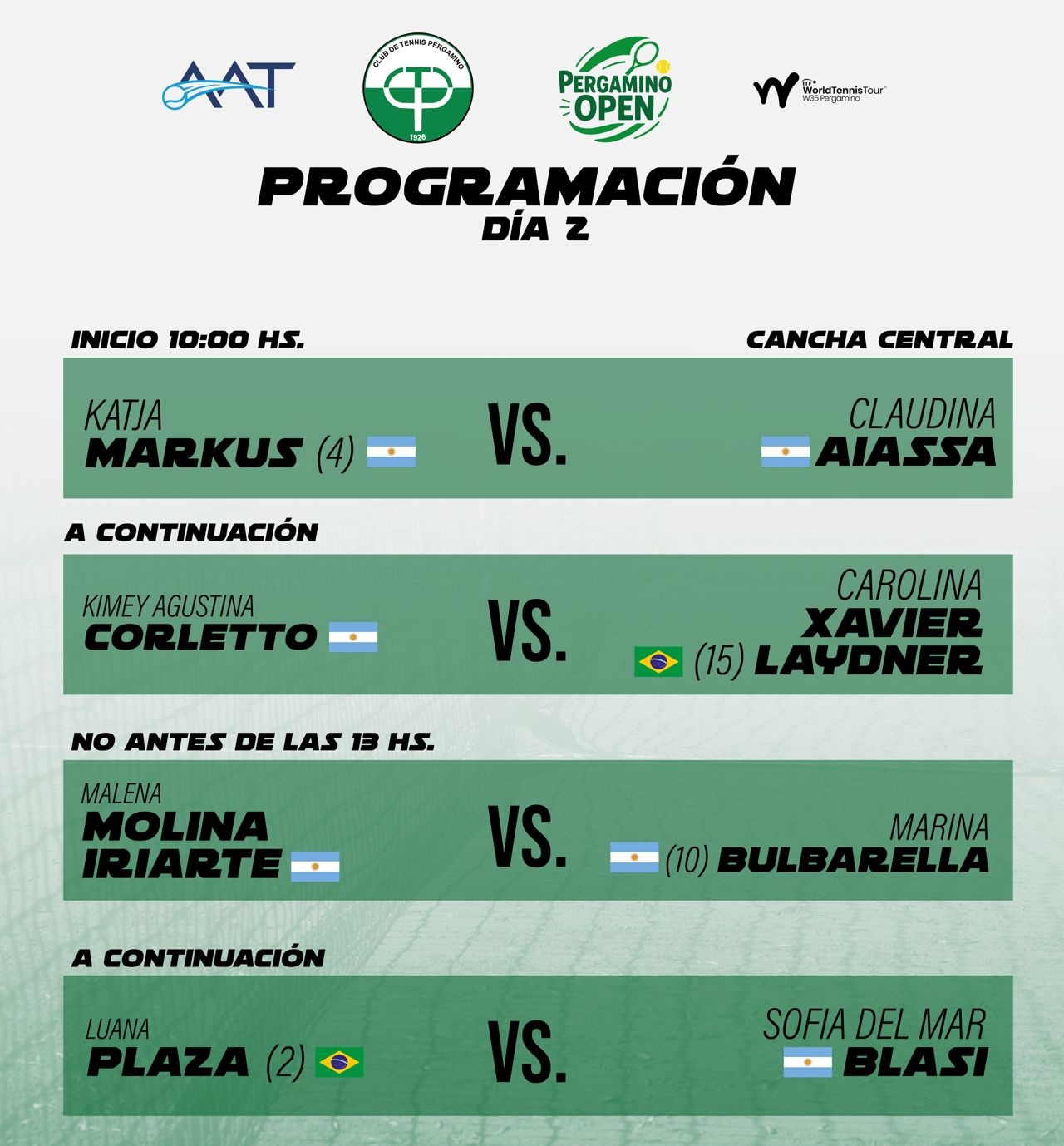 Entre ayer y hoy se llevará adelante la qualy, y desde mañana (siempre que el clima acompañe) comenzará a disputarse el cuadro principal, tanto en singles como en dobles. Pergamino espera por el debut tanto de Julia Riera como de Berta Bonardi, las locales.