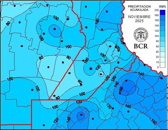 En el resto de la región, entre adecuadas a óptimas. Lo ideal hubiese sido que la mayor carga de agua la recibiese el norte de la región dónde la cosecha de trigo estaba en el último tramo. De todas maneras, son milímetros muy importantes para la gruesa. Noviembre termina en la región núcleo con 106 mm como promedio de las 36 estaciones que componen la red GEA/BCR, superando levemente los 100 mm de la media histórica mensual.