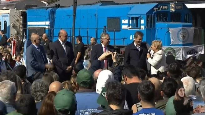 "Veo desesperaza en mucho de mis compatrioras que se plantean que en la política todo es lo mismo, y todo va para el mismo lado, y las cosas no son así", reiteró, y agregó: "Llegamos con Néstor (Kirchner) al Gobierno y pusimos en marcha un plan para que los trenes lleguen a todos los pueblos. Cristina (Fernández de Kirhcner) antes de irse llamó una licitación para hacer esto, pero quien la sucedió (Mauricio Macri), dijo que eso no había que hacerlo y entonces no se hizo. Pero como pensaban Perón, Evita, Néstor y Cristina, el tren hace falta a lo largo y ancho de la Argentina para que nos una".