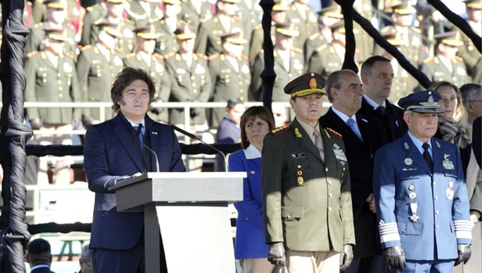 “Durante años, la política utilizó a las Fuerzas Armadas como chivo expiatorio para justificar la reducción del gasto en defensa. Se los acusó de ser los grandes culpables de la decadencia nacional”, dijo Milei. Y añadió: “Jurar la bandera no es una formalidad, es un compromiso de vida, que puede exigir hasta darla si la Patria lo demanda”.