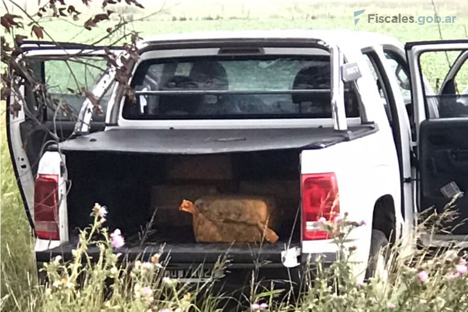Sobre el terreno se hallaron tres trozos de tela de cinco metros de largo por 50 centímetros de ancho, colores rosa y blanco, que serviría como referencia al piloto de la aeronave para marcar el sitio donde hacer la descarga. A su vez, a unos 300 metros del acceso a Rancagua se encontró otra camioneta, también Amarok, sin ocupantes. En su interior había una mochila y un certificado de Verificación Técnica Vehicular (VTV) a nombre de Zacarías Reyes.