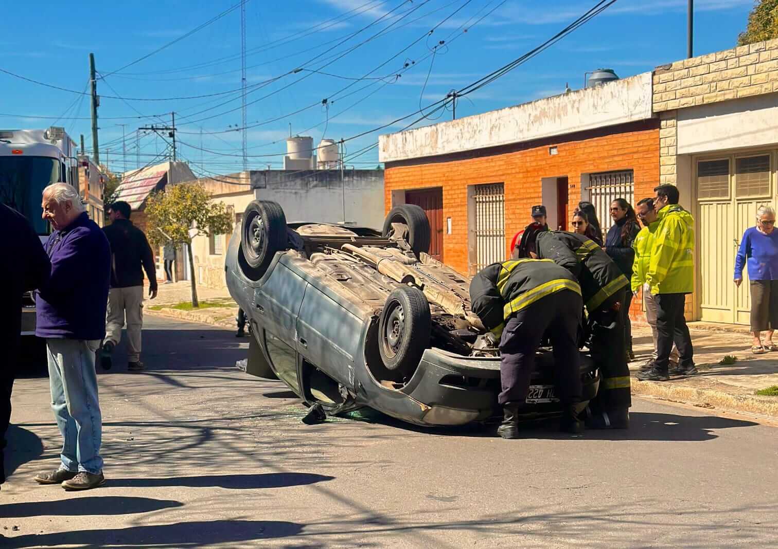 Por razones que se están investigando, un Chevrolet Corsa, conducido por un chofer de remis de 62 años, perdió el control, rozó a un Fiat Cronos que se encontraba estacionado y volcó en cercanías de la Escuela Secundaria N°14.