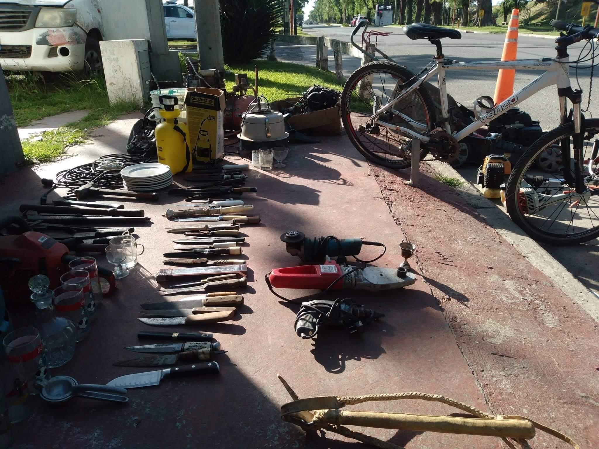 Entre los elementos secuestrados se destacan 3 motosierras, 2 motoguadañas, un compresor, amoladoras, una cortadora de césped, herramientas de mano y un rollo de cables. También secuestraron cuchillos y cuchillas (aproximadamente 26 unidades), vajilla antigua de porcelana, vasos, copas de antaño, bicicletas, televisores, un rifle de aire comprimido 4.5mm, un juego de estribos.