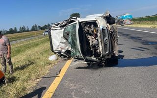 Despiste y vuelco en la autopista de la Ruta 8: un hombre pasó varias horas atrapado dentro del habitáculo