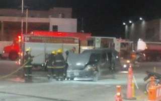 Se incendió un automóvil en la autopista y el fuego se extendió a los pastizales