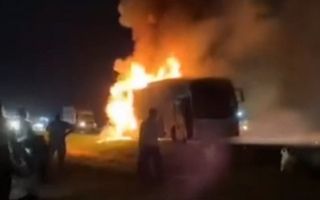 Se prendió fuego un micro de dos pisos en la Ruta 2