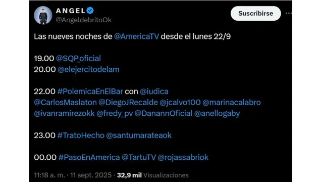 La nueva grilla nocturna de América TV, según informó Ángel de Brito, quedará conformada de la siguiente manera: